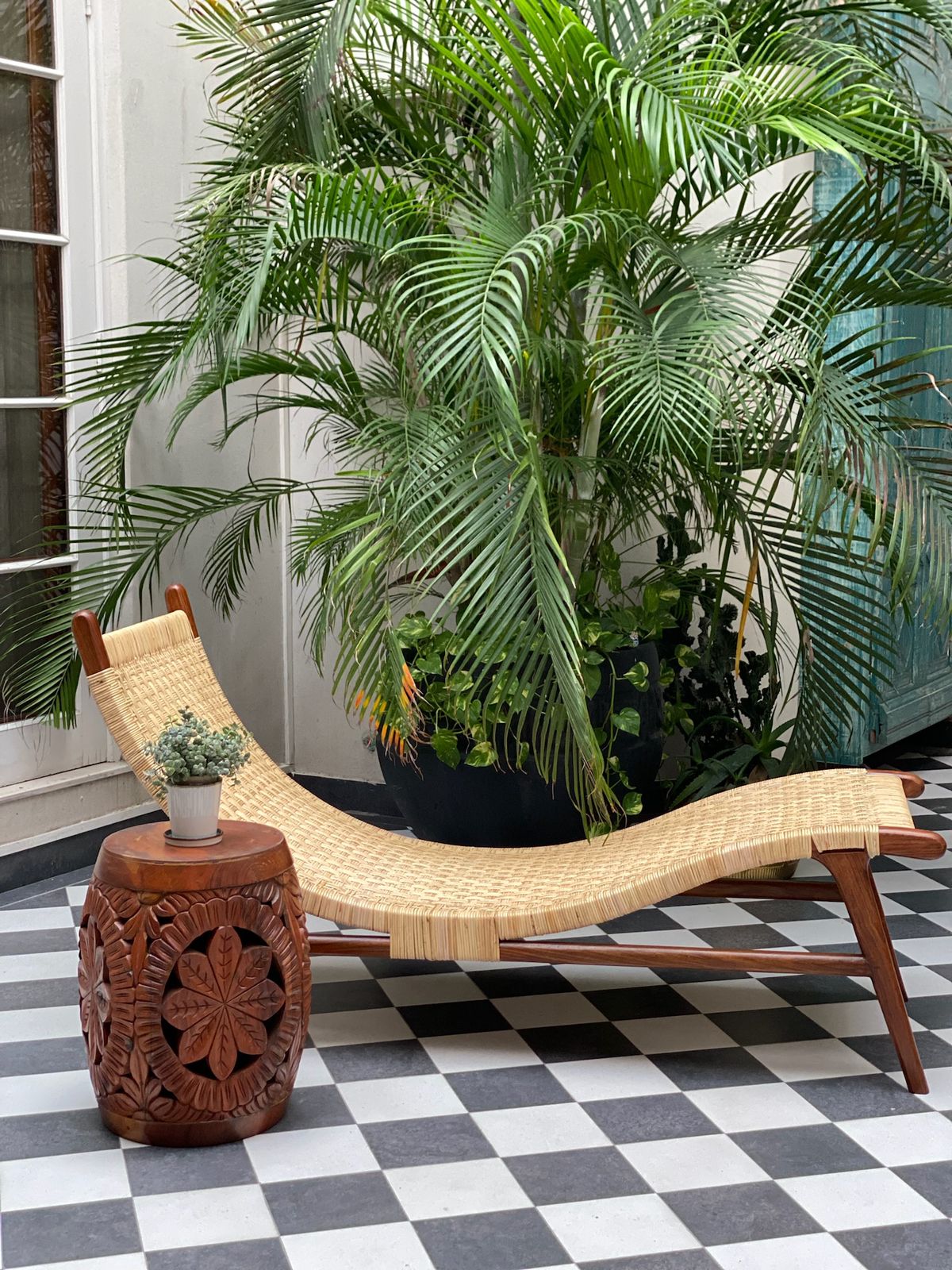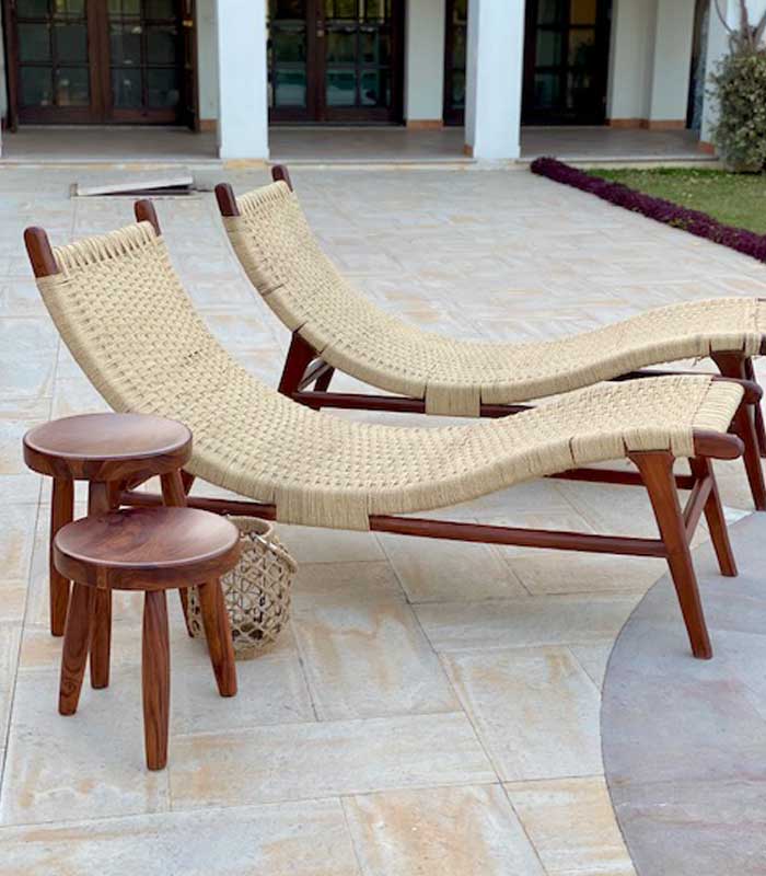 Add a bit of natural texture and pure wood to a classic silhouette and you get these gorgeous chaise lounges!